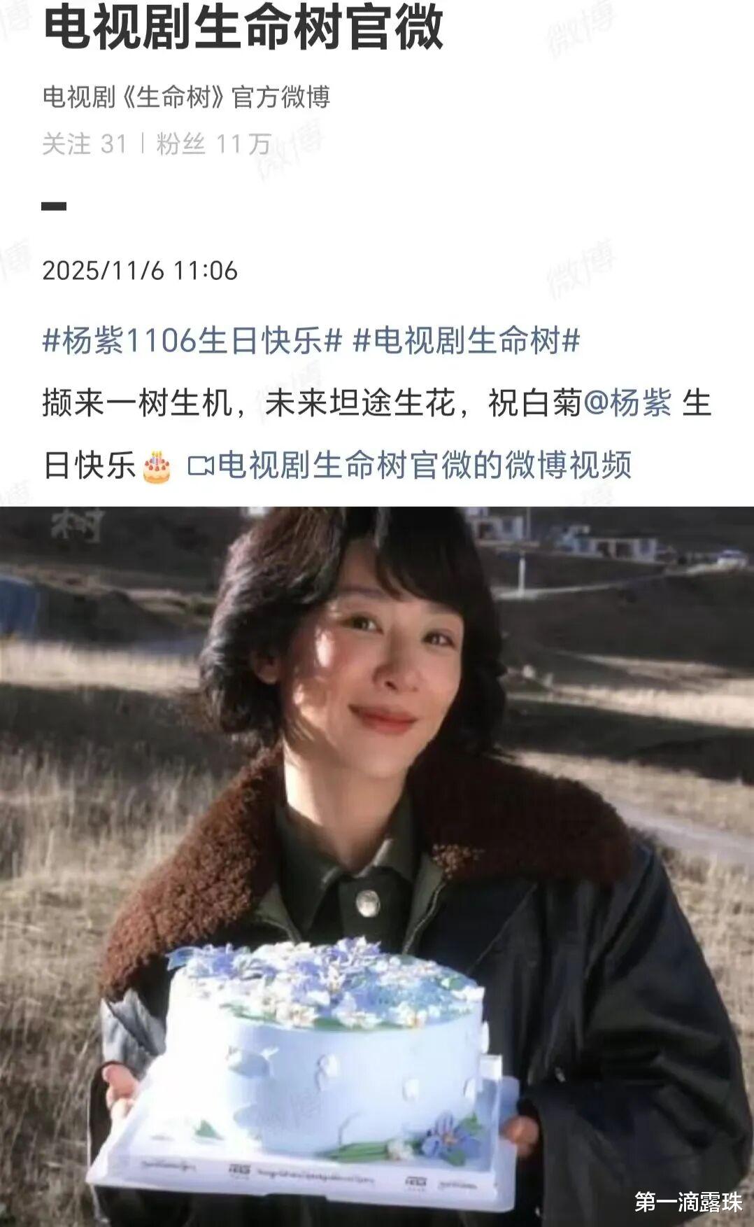 《生命树》剧组,在《生命树》官微为杨紫庆生:杨紫11.06生日快乐!撷来一树生机,未来坦途生花,祝白菊@杨紫生日快乐!