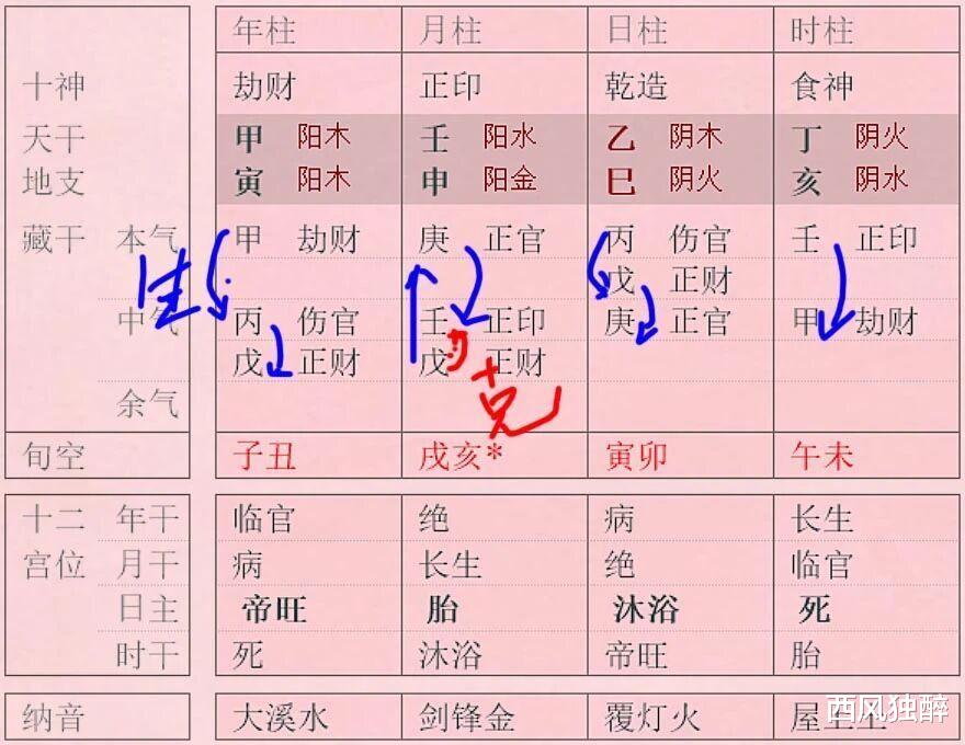 为什么寅申巳亥中都是“相生”?原因我也不知道,因为地支藏干是按照《地支藏遁歌》排布,并不完全按照“人元司令分野”,原因未知。