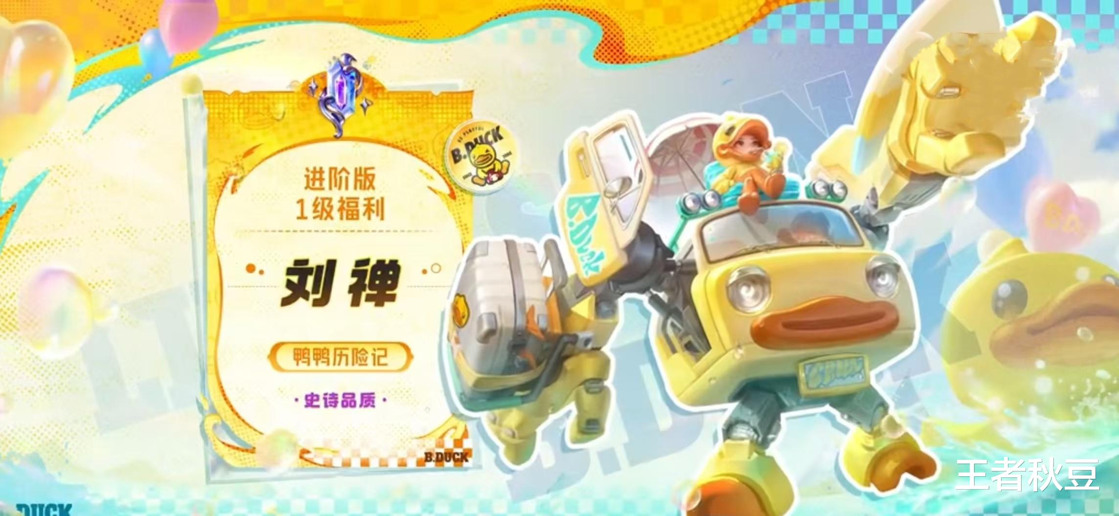 S39赛季1级战令为刘禅-鸭鸭历险记,史诗品质,4.1日上线,需要开通进阶版战令才能获取。