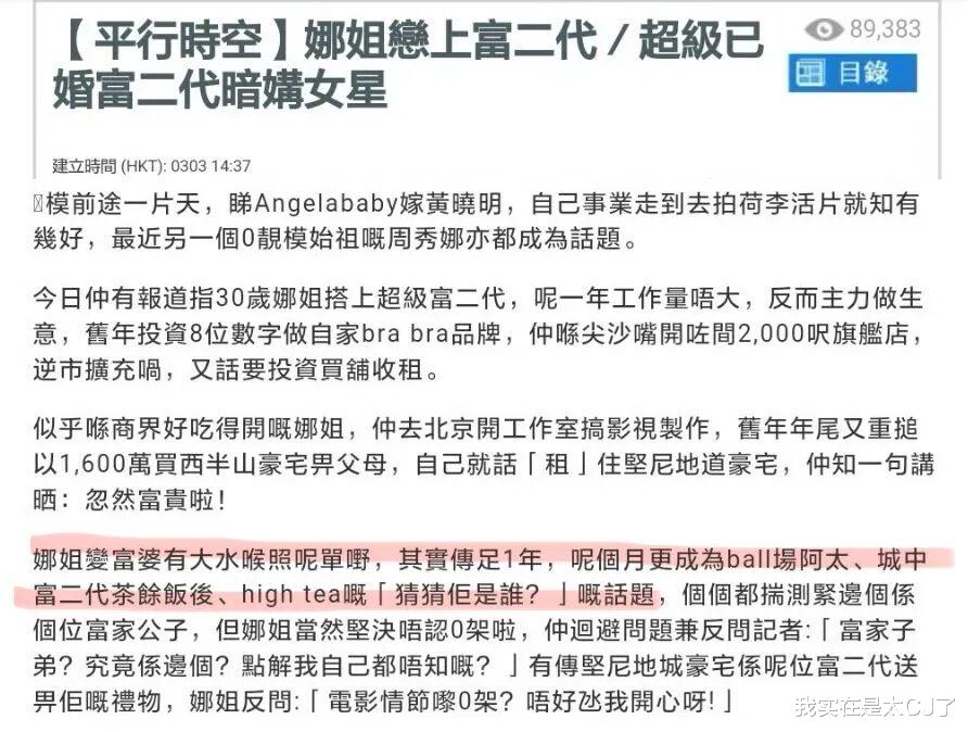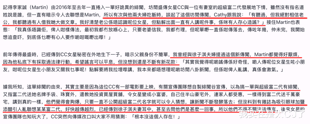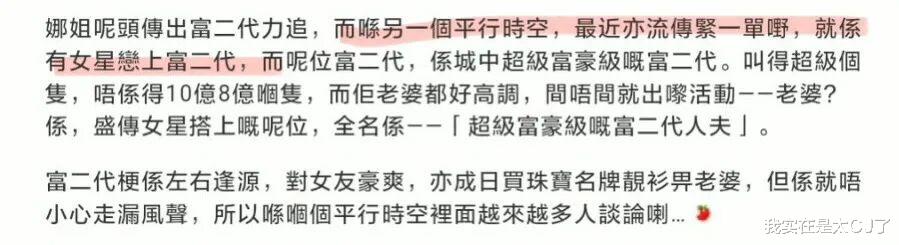 最离谱的是结尾那段“平行时空还有个女明星恋上富二代传说”,重点提到这位富二代绝不是身价只得十亿八亿那种“小开”级别,而是“超级富豪”,经常会给太太买珠宝名牌,他的太太本身也是高调之人,时不时都会出来活动……