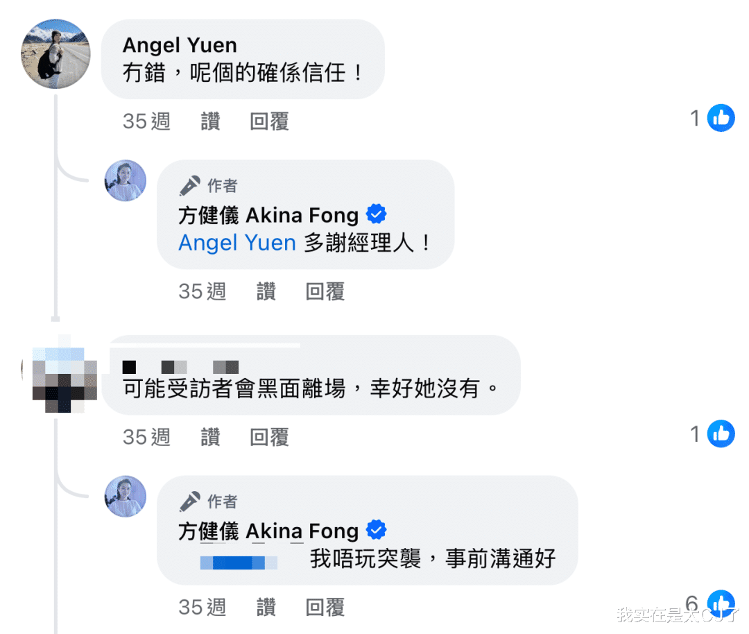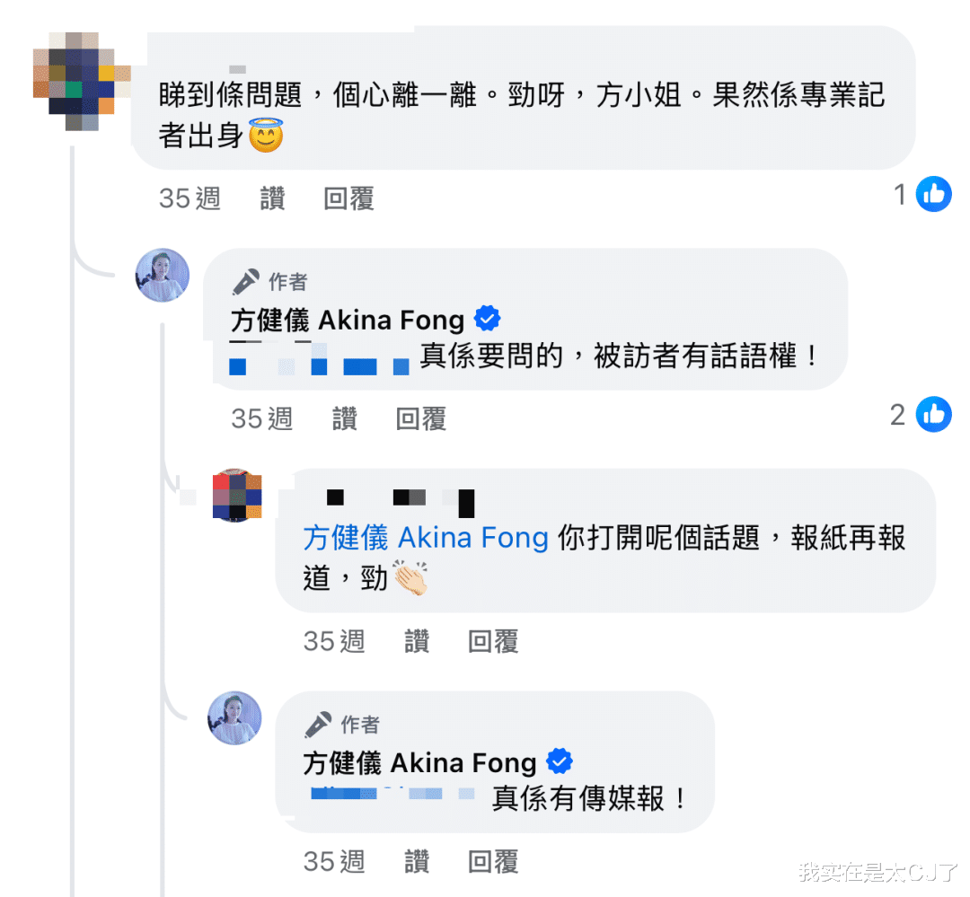 看方健仪的反应,这段对话被媒体转载也是出乎她意外的。