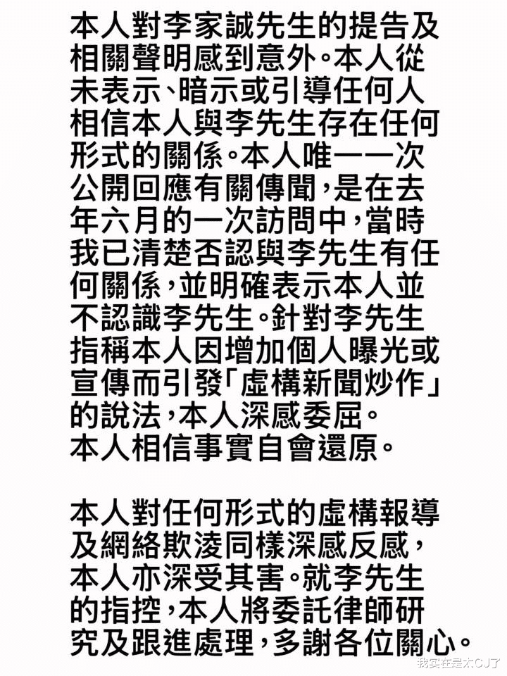 不回避、肯直面,和李家诚声明里说的“预先沟通要谈论’被包养’传闻”以及“自私地为了大到其个人目的……选择重提虚构传闻”,根本是两码事。