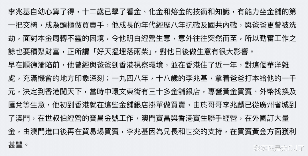 你可以说李兆基人生好似开挂般平顺,但要讲故事也肯定没有其他巨富奋斗经历里的逆袭、绝境、爱恨纠缠那样吸睛。