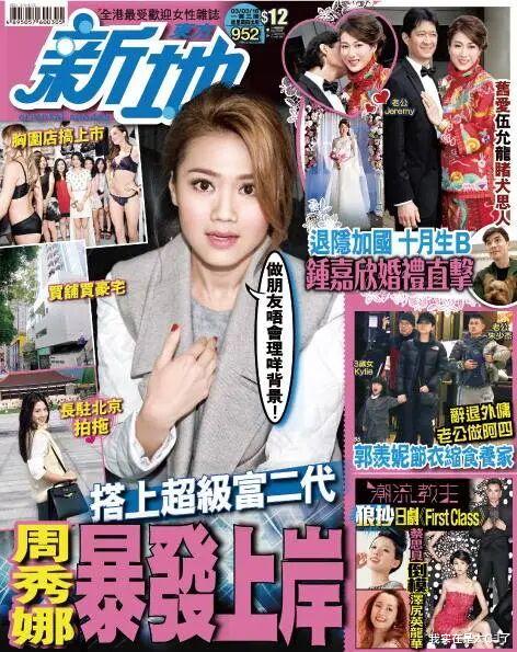 没想到过了几天,《东方新地》直接在封面点名,说周秀娜又买店铺买豪宅,又砸钱开内衣店就是因为搭上超级富二代“暴富上岸”,所以才要谋求事业新出路,不乐意再卖弄性感。