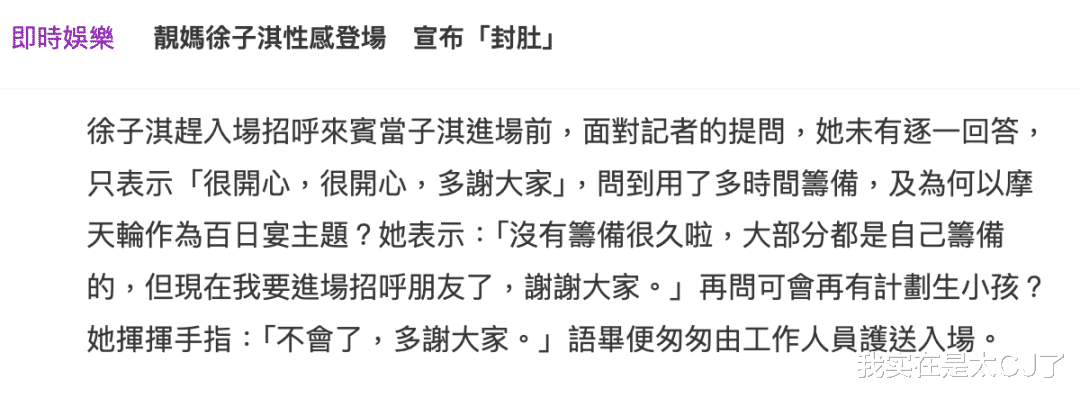 而徐子淇婚后07、09、11每隔两年就剖腹产一次,到11年生下儿子后才松口气,等到15年生完小儿子彻底宣布“封肚”的拼生纪录……样样都那么贴合港岛本土民俗舆情,下酒配饭都很合适,就算传媒不跟进,网友们也会自主紧盯。
