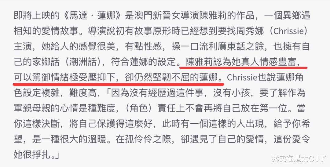 周秀娜演《29+1》拿到了香港电影评论学会大奖和金像奖提名,后续被业界肯定又成了一些小众文艺片首选,一些人只看到曝光度没以前高,就传她偷偷跑去生孩子了。