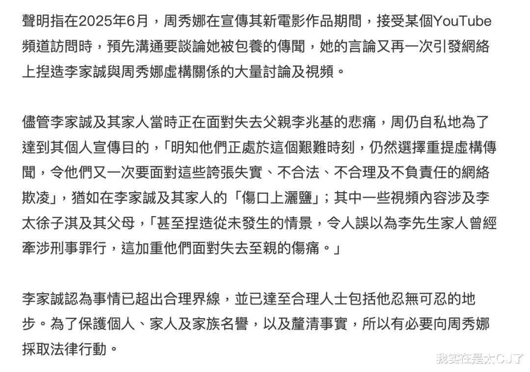 难怪部分香港网友吐槽李家诚,这么一告反而是把大家原本不知道的事情闹到人人都在聊真是没有必要。
