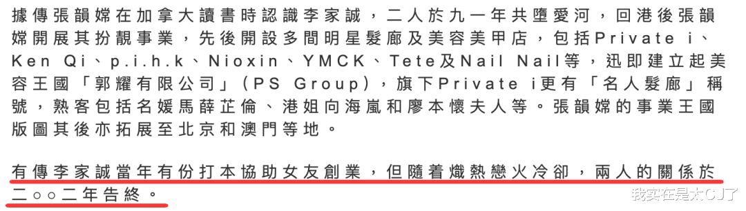 但这阶段她和李家诚已经稳定恋爱六七年,不同媒体都写过张韵嫦创业背后有男方的出资支持。