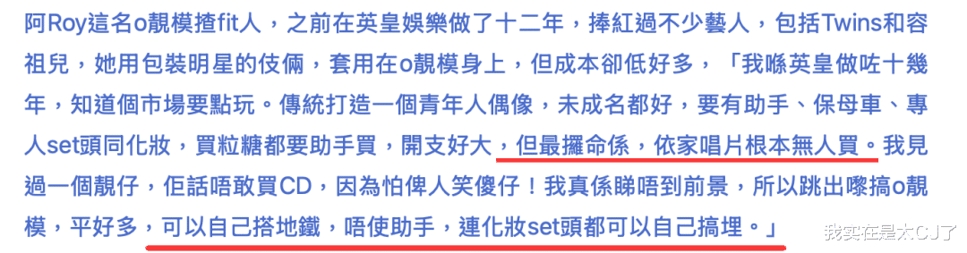 周秀娜当时的经纪人阿Roy之前在英皇做了十几年,觉得唱片公司那套包装模式完全可以在𡃁模身上低成本复现:无需助理保镖,不用车接车送,妆发费用也可以她们自己搞定。