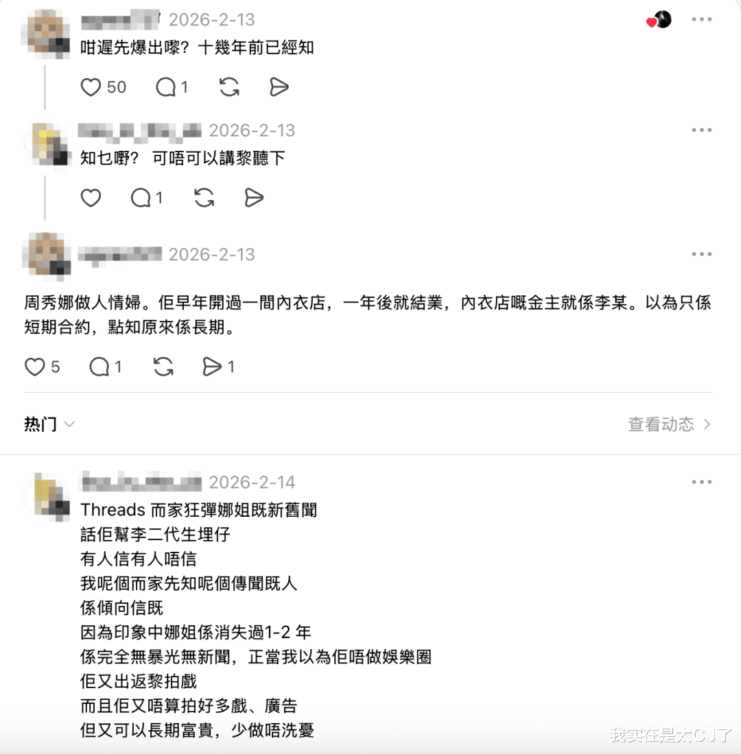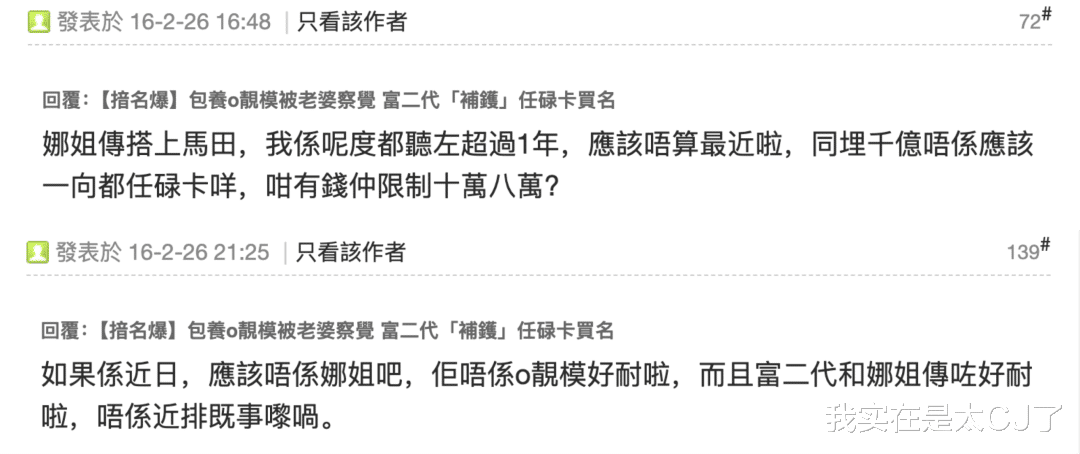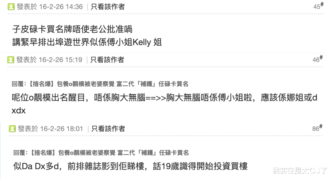 转载这篇报道的几大论坛留言区猜谁的都有,傅嘉莉、Mandy Lau、Dada……全都被提名了一遍,当然周秀娜出场频率也不低。
