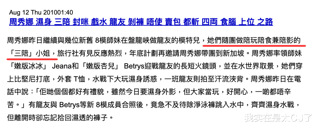 这种活动其实很消耗艺人形象,因为内地公开信息说她们是来拍写真的,港媒说她们任拍三陪。