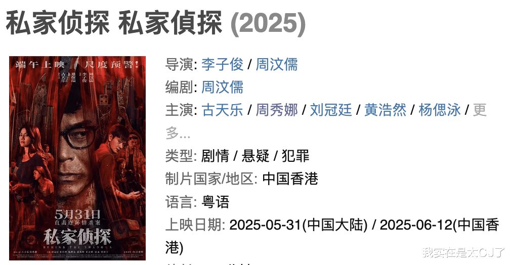 周秀娜主演的《私家侦探》内地上映是2025年5月31号,香港上映比这还要再晚小半个月,到传说中的采访出街已经是6月27号,电影都上到第三周了……要炒作为什么不选排片密集的映前?