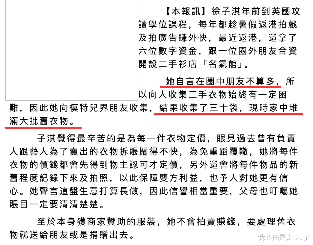 但和李家诚约会曝光前小半个月,自言“圈中朋友不多”的她竟然能从张玉珊、张燊悦、周汶锜周励淇两姐妹和Cookies这些女性明星名人手头收集了三十袋模特旧衣来开二手店。