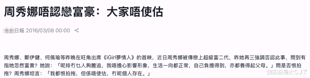 刚好2016年3月10号周秀娜担任女一号的电影《iGirl梦情人》上映,临上映前有劲爆绯闻,每家媒体都不想错过,所以那段时间也确实有很多她回应相关传闻的报道出街。