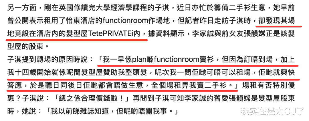 徐子淇虽然解释了,说自己14岁开始就被Private i赞助发型,也很感谢对方肯不做生意把场地留给自己,但租不到酒店多功能厅就跑去租发廊来卖二手衣,也很诡异不是吗?