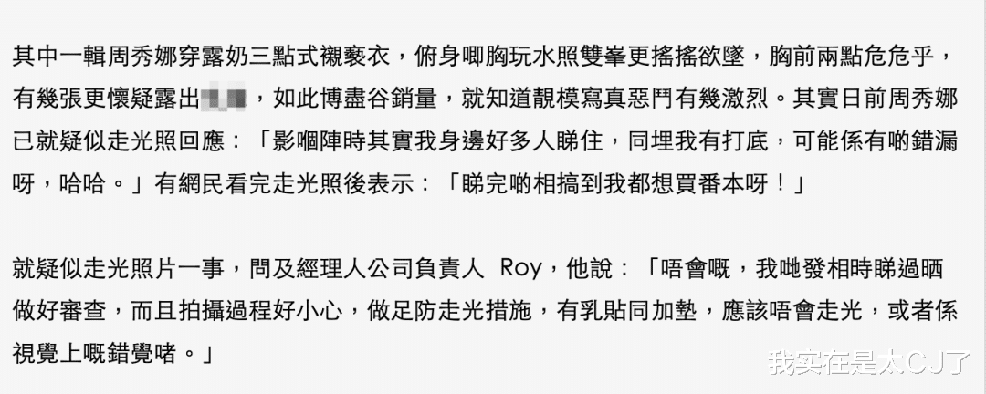 香港本地论坛上有网友忍不住发帖,说自己因为周秀娜这本写真和男友分手,帖子被回复600多楼变成年轻人讨论的热门话题,可见当时舆论有多大。