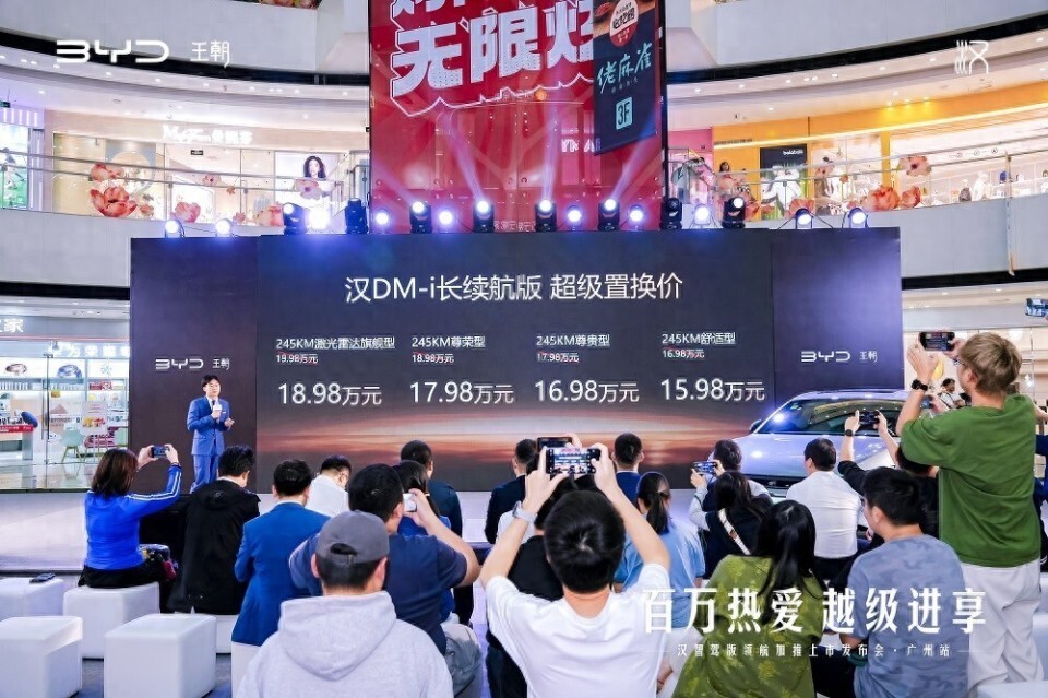 全新汉DM-i智驾版长续航版以“城市用电、长途用油”为设计理念,纯电续航达245公里,轻松覆盖日常通勤;综合续航更高达1560公里,相当于从广州直达武汉无需补能。官方指导价16.98-19.98万元,首次将超长续航混动轿车拉入16万价格区间。