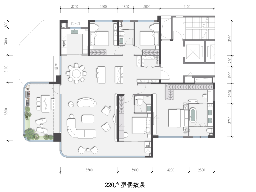 这次加推的建面约220㎡户型,专为城市塔尖人士定制,是真正意义上的“集大成之作”和“楼王户型”。