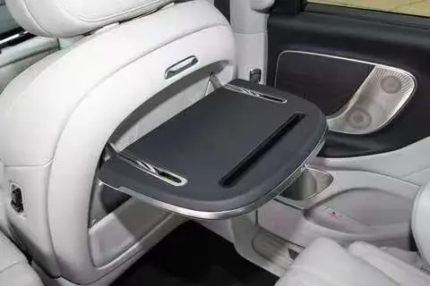 扶手箱上还有一块6英寸的小屏幕,后排的人可以用它控制空调、调节座椅、切换音乐,不用麻烦前排的人,自己动手就能操作,像玩游戏机似的,很简单。座椅旁边还有折叠桌板,平时出差的时候,把电脑放在上面,就能处理文件,虽然空间不算特别大,但临时用用完全够了。