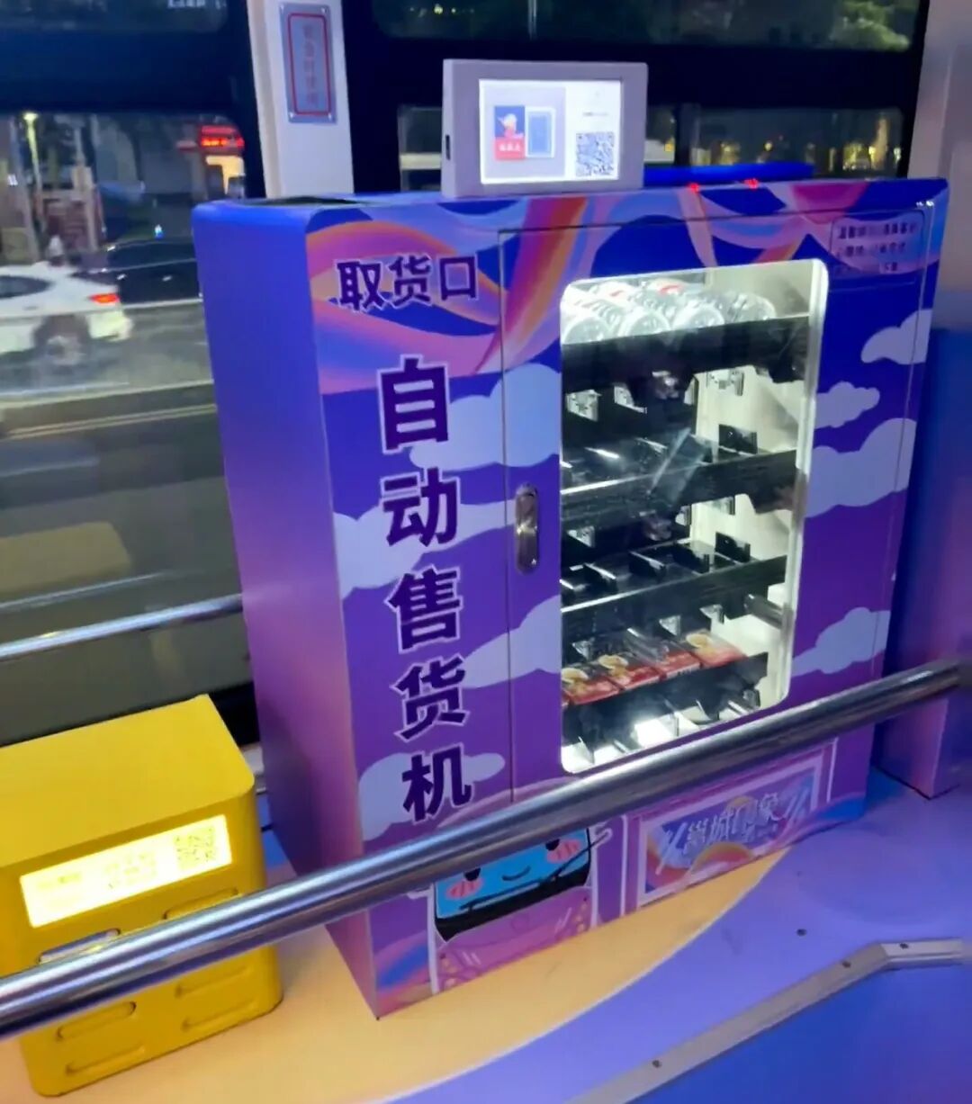 除此之外,还配备有自动售货机和共享充电宝,车身是邕城印象主题,车上侧栏有南宁旅游景点宣传简介,简直不能太高级。