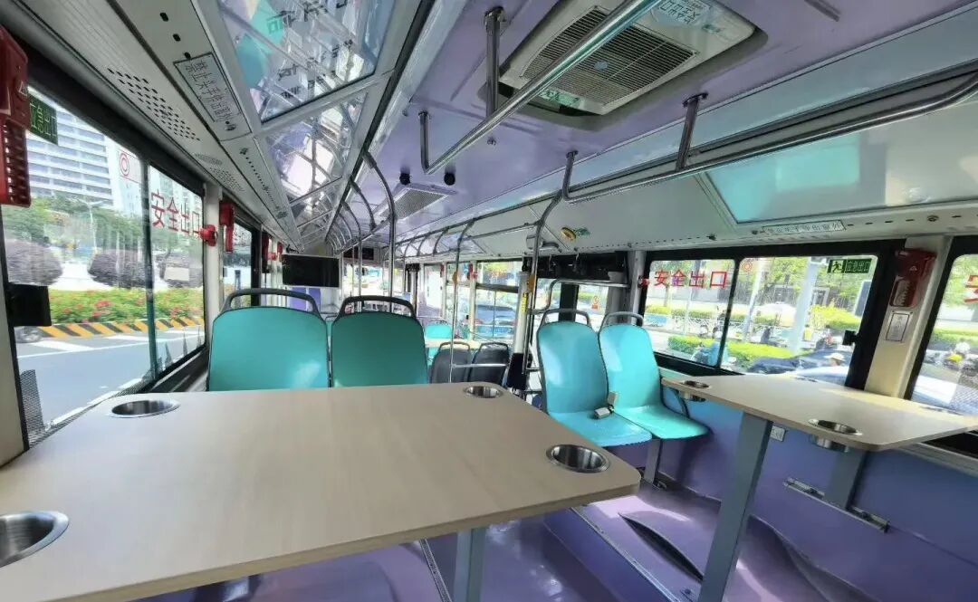 车厢内设有2至4人围桌式座位,桌板上还有放奶茶的凹槽,斗地主、做作业、嗦粉都不成问题.....坐在上面可以玩一天。