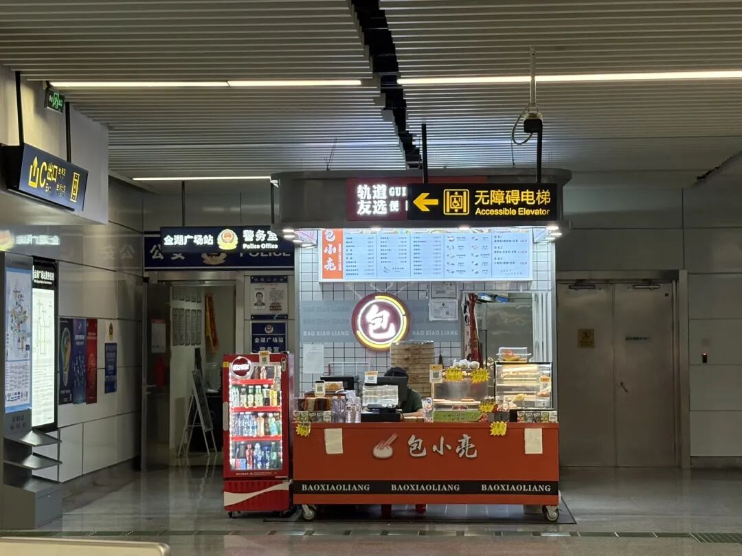 每次我经过金湖广场的换乘站,里面的那个面包售卖点都被围得水泄不通。这里原来是乘客服务中心,上半年已经改成了面包售卖点,租赁给第三方卖糕点。