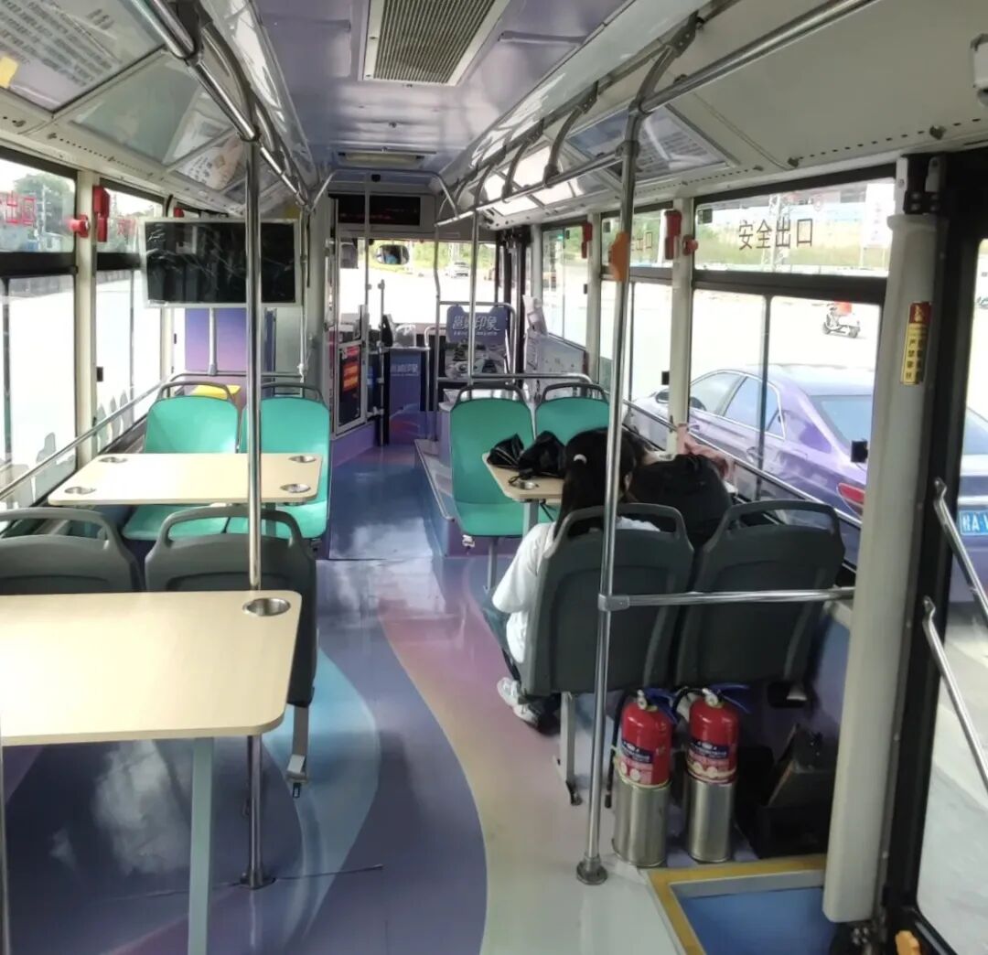 近日跟友仔聊天他给我提到个事,南宁的公车都发展成「车吧」了。他有次坐公车意外发现,车上桌板、USB充电一应俱全,是活久见。