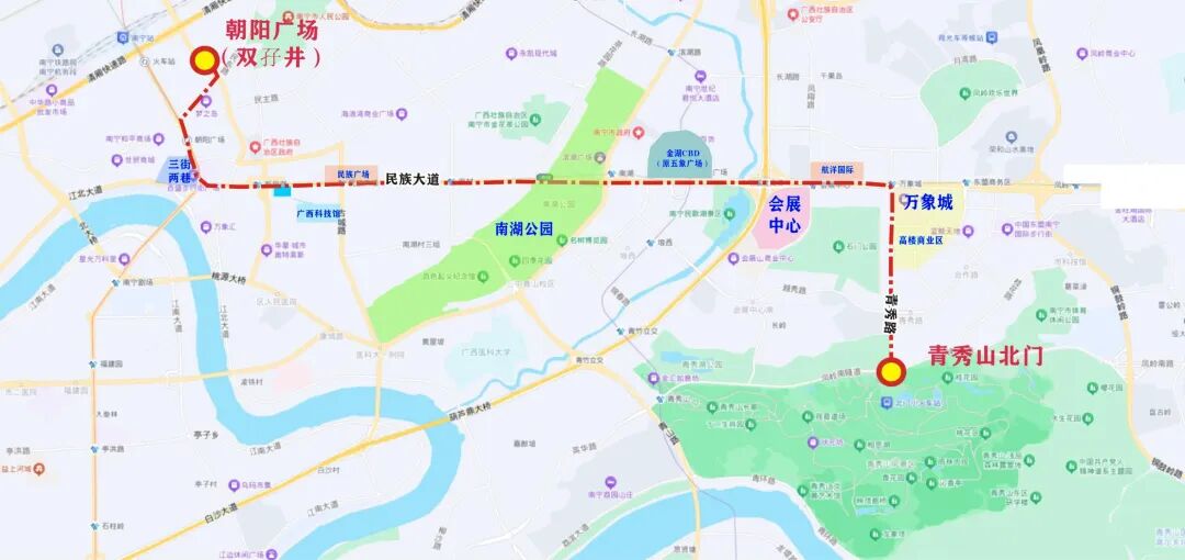 98路公车行驶路线为竹溪立交到南宁师范大学五合校区,是连接城市中心与大学城的重要通道,客源以学生、教职工及周边居民为主,客流量相对稳定。
