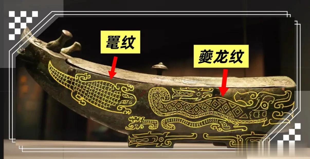 器身纹饰细腻精美,龙纹与鼍纹相映成趣,线条流畅灵动,尽显商代青铜铸造的高超技艺。