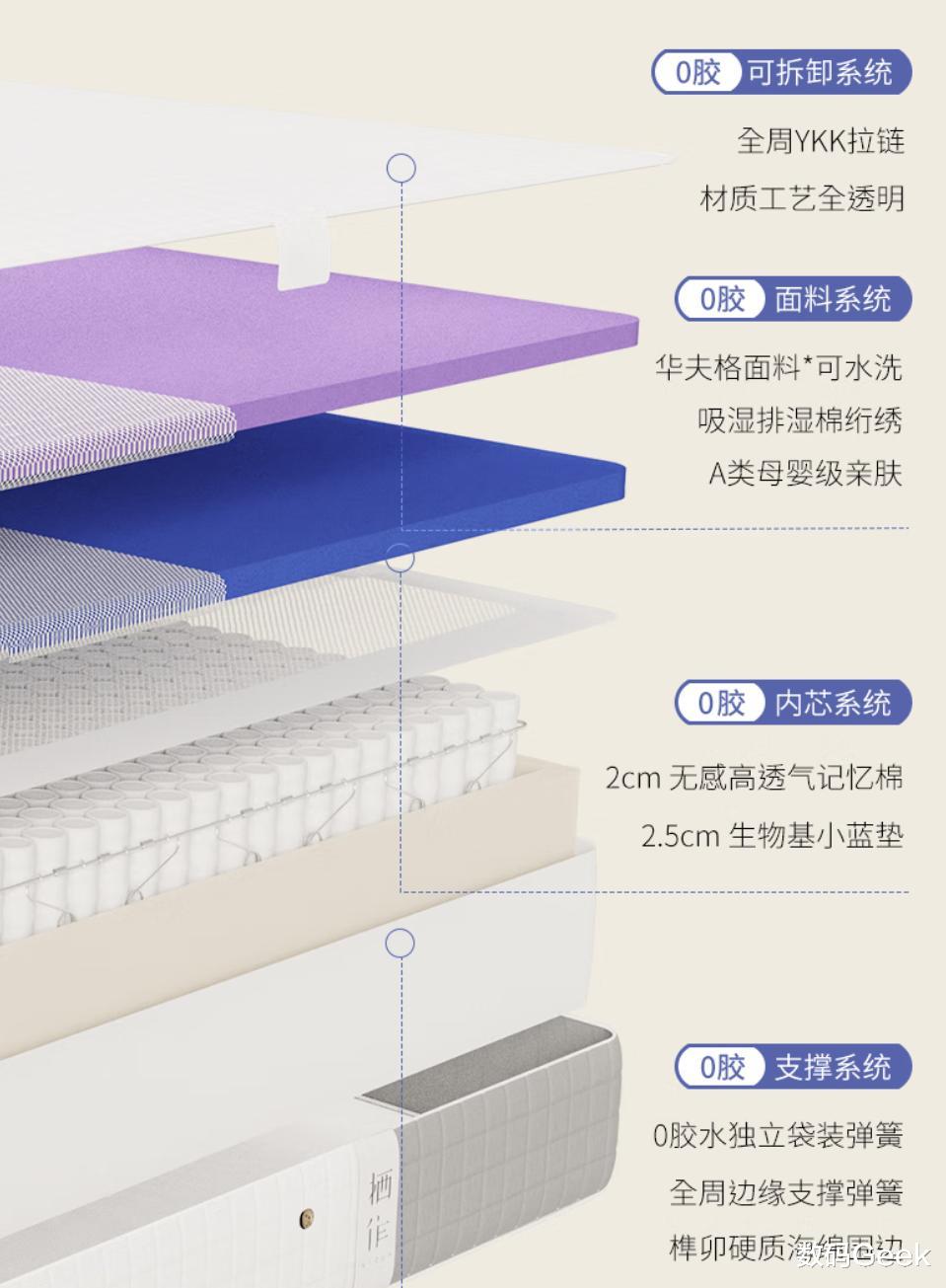 前面我说的是一些锦上添花的亮点,对于选择一个床垫,最重要的还是睡感舒适与否。这一点上,栖作也是采用了不同的方法,来尽量满足不同人群对于在睡觉这件事情上的需求。
