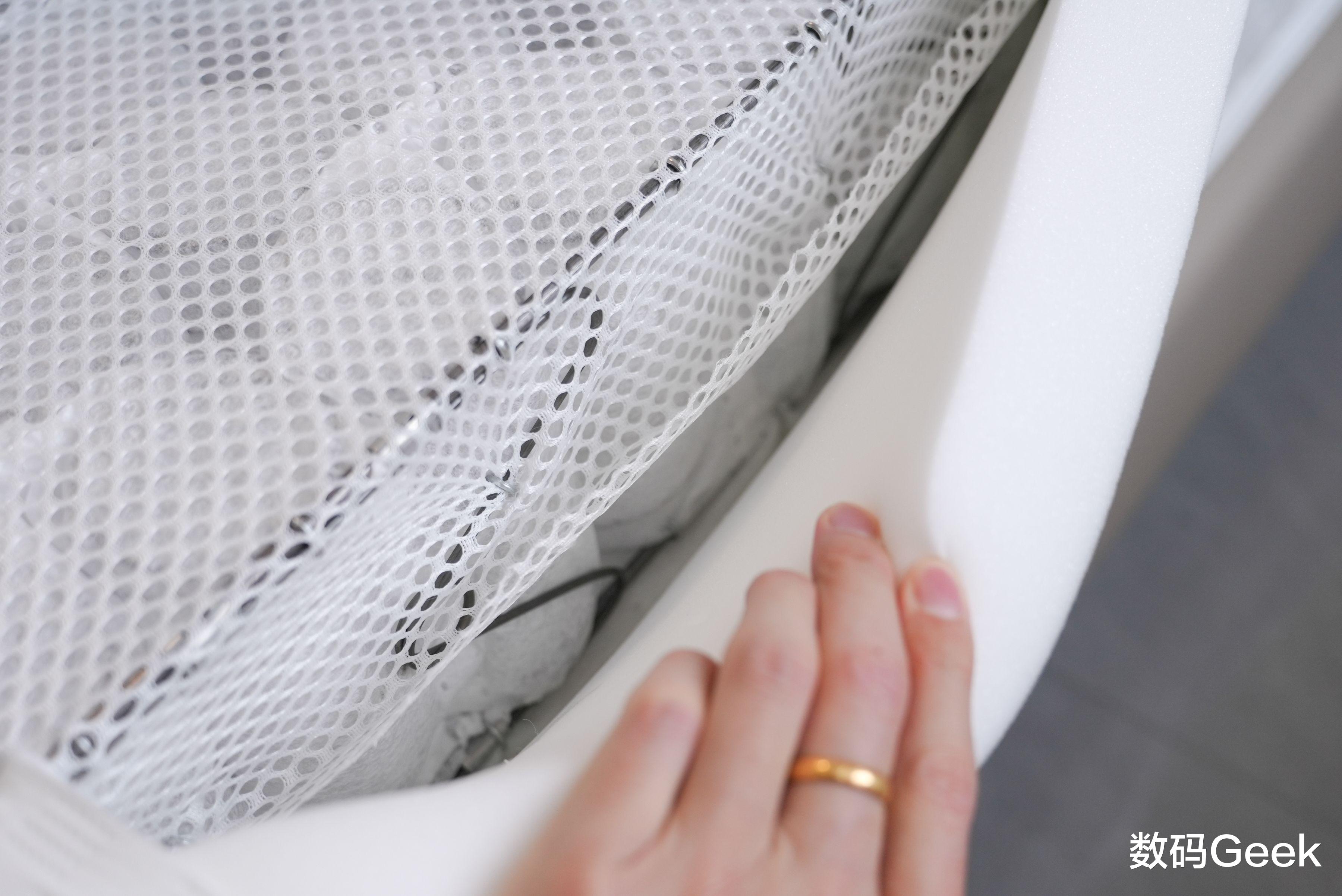 还有一点就是关于环保安全,首先是我前面提到的可拆卸这一点,当我拆开床垫之后,我们可以看到里面的每一层材质,从内到位外明明白白的给你展示出来,芯材让你看得见摸得着,不像其他的床垫,连里面的海绵到底啥样都不知道。