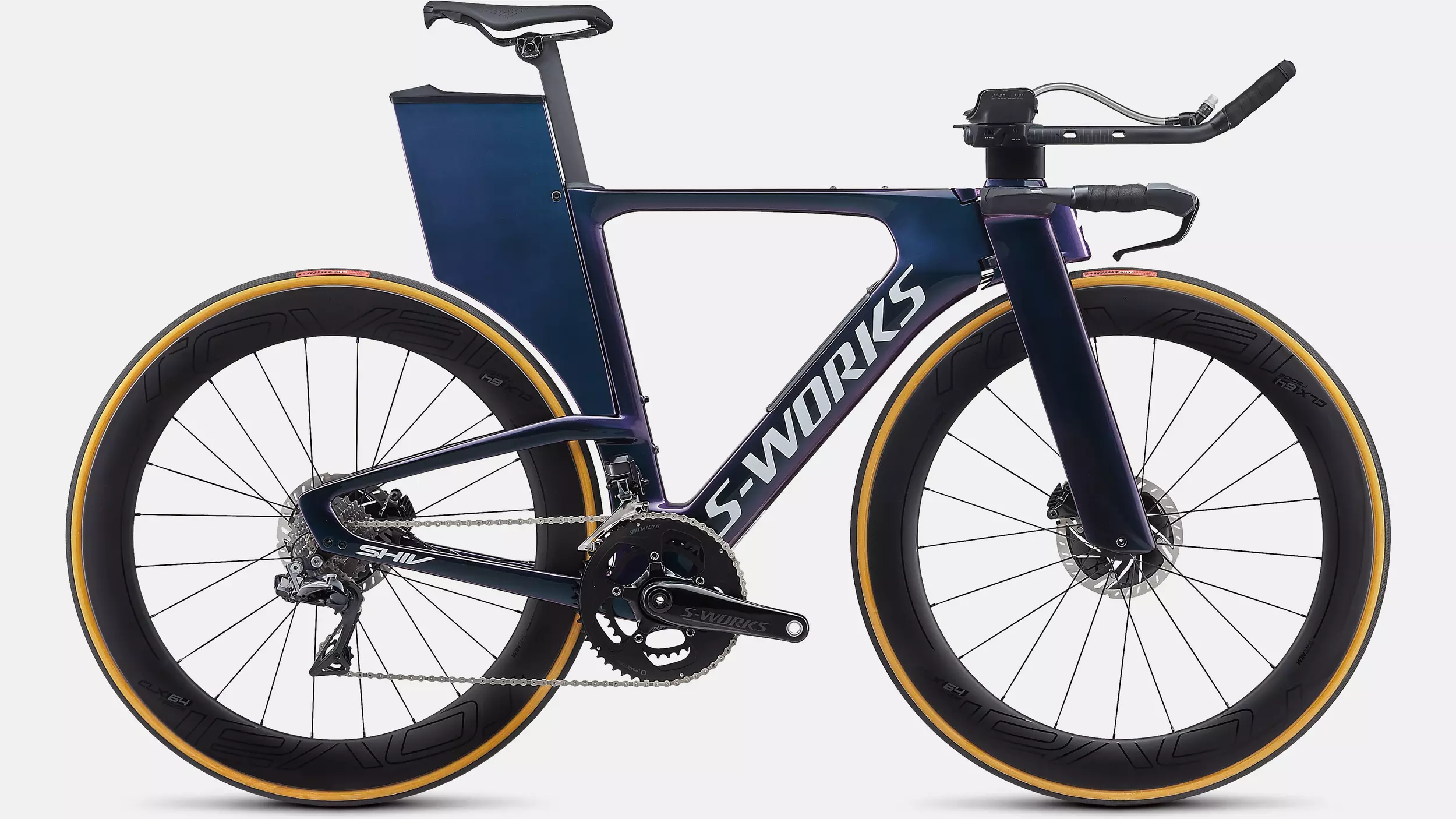 Specialized S-Works Shiv Disc 限量版是为那些渴望在比赛时间上分秒必争的骑手打造的计时赛(TT)战车。15,680美元的疯狂售价使其无疑是一台"梦幻单车",但对于认真的铁三运动员和竞技骑手来说,它是有史以来最出色的TT自行车。S-Works Shiv Disc 限量版旨在从各个方面将阻力降至最低。车架采用Specialized的Advanced ViasTM系统塑造外形,造就了流畅且善于破风的轮廓。内置的空气动力学把立进一步减小了迎风面积,并且仍可根据骑手需求进行调整。