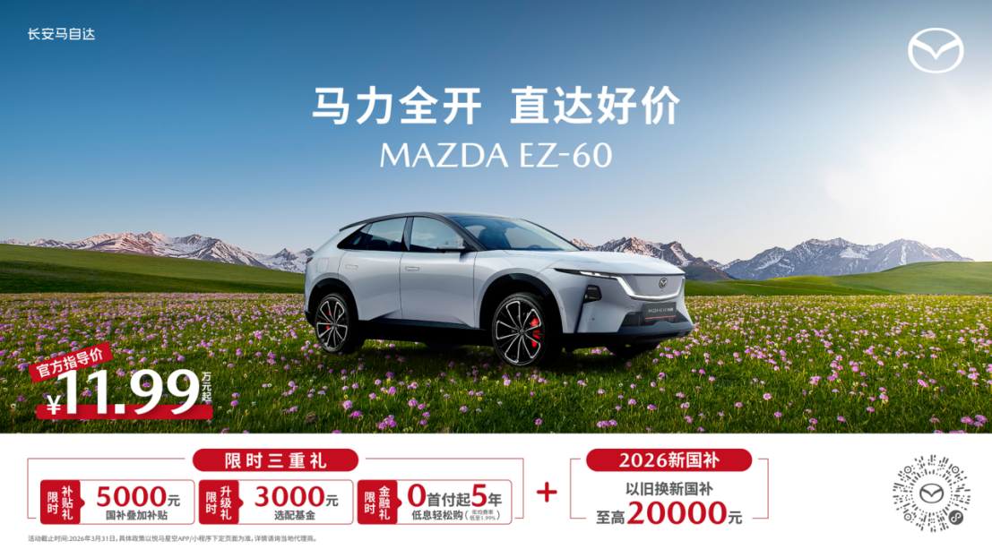 自上市以来,EZ-60凭借出众产品力斩获央视“第一发布”认证、全球四大顶级设计大奖等荣誉。此次升级彰显长安马自达持续迭代的诚意,同步上新的EZ-60运动版已到店,并推出三重新春限时购车礼遇,活动截至2026年3月31日。