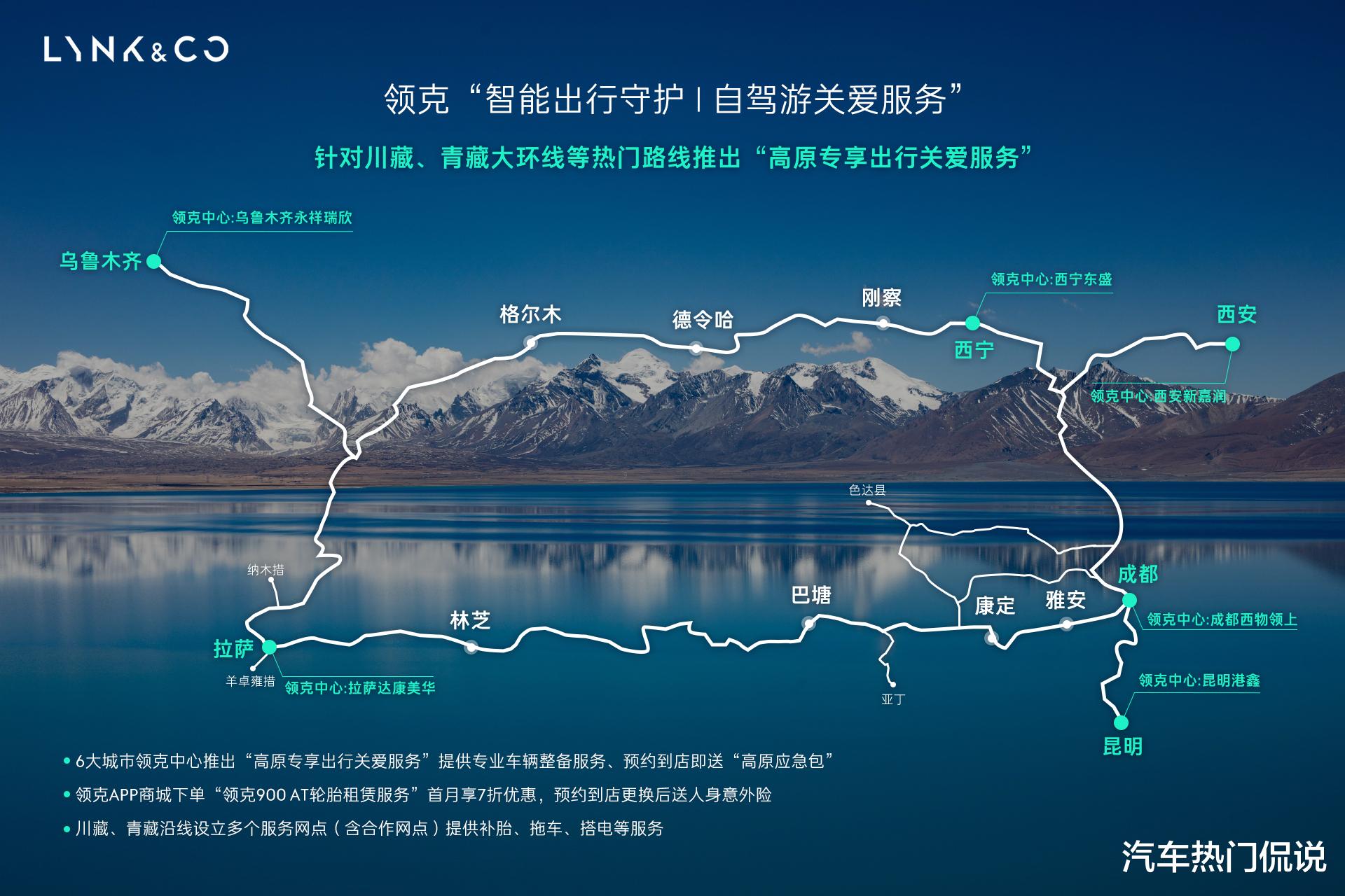 为确保旅途顺畅,领克在川藏、青藏沿线设立多个服务网点(含合作网点),覆盖范围包含刚察、德令哈、格尔木、林芝、巴塘、康定、雅安等地区,可提供更快捷的补胎、拖车、搭电等服务。旅行过程中,如遇因质量问题导致的行程延误,领克还将提供代步方案,保障用户的旅行计划。此外,领克基于领先的车联网技术和大数据能力,可为用户提供主动服务和远程诊断,智能守护用户行程;若车辆在中国大陆地区(不含港澳台)发生故障时,可享受24小时全国道路救援服务;如遇自然灾害或极端天气时,领克中心还将提供紧急援助,覆盖用户自驾出行的各类场景与需求。