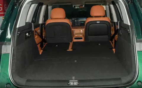 此外,这辆车的后备厢容积也非常出色,标准状态下达到了687升,可以轻松放下很多物品。如果是那种20英寸的行李箱,后备厢可以直接放下八九个,而且还有一些空余空间,可以用来放置小件物品。当然,如果将后排座椅完全放倒,后备厢的容积会大幅提升,最大可以达到1663升。这样的容量几乎能够满足所有消费者的实际用车和储物需求。无论是商业用途,还是户外场景、设备,都可以轻松装下。甚至可以放下冰箱、家具等大件物品,几乎可以当作一辆小型搬家货车使用。