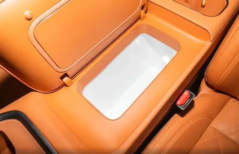 除此之外,这辆车的内部配置也非常丰富。不仅充分考虑了整体的乘坐舒适度,还为老人、孩子,甚至年轻群体都提供了相应的实用配置。针对孩子,这辆车配备了后排娱乐屏,采用的是一块15.6英寸的全液晶屏幕。这个屏幕可以随时播放各种视频、电影,甚至音乐等内容。当车上有孩子时,可以用这块屏幕播放动画片等,能够快速让孩子安静下来,为车内营造出一个非常安静、舒适的氛围。而且,这块屏幕的清晰度和响应速度都非常高,能够为小朋友带来很好的使用体验。此外,前排座椅后方还配备了一个可折叠的小桌板。这个配置实用性很强,平常可以用来办公、吃饭等。孩子乘车时,甚至可以直接将其当作写作业的小桌子,满足了不同乘客的实际使用需求,看起来相当方便。