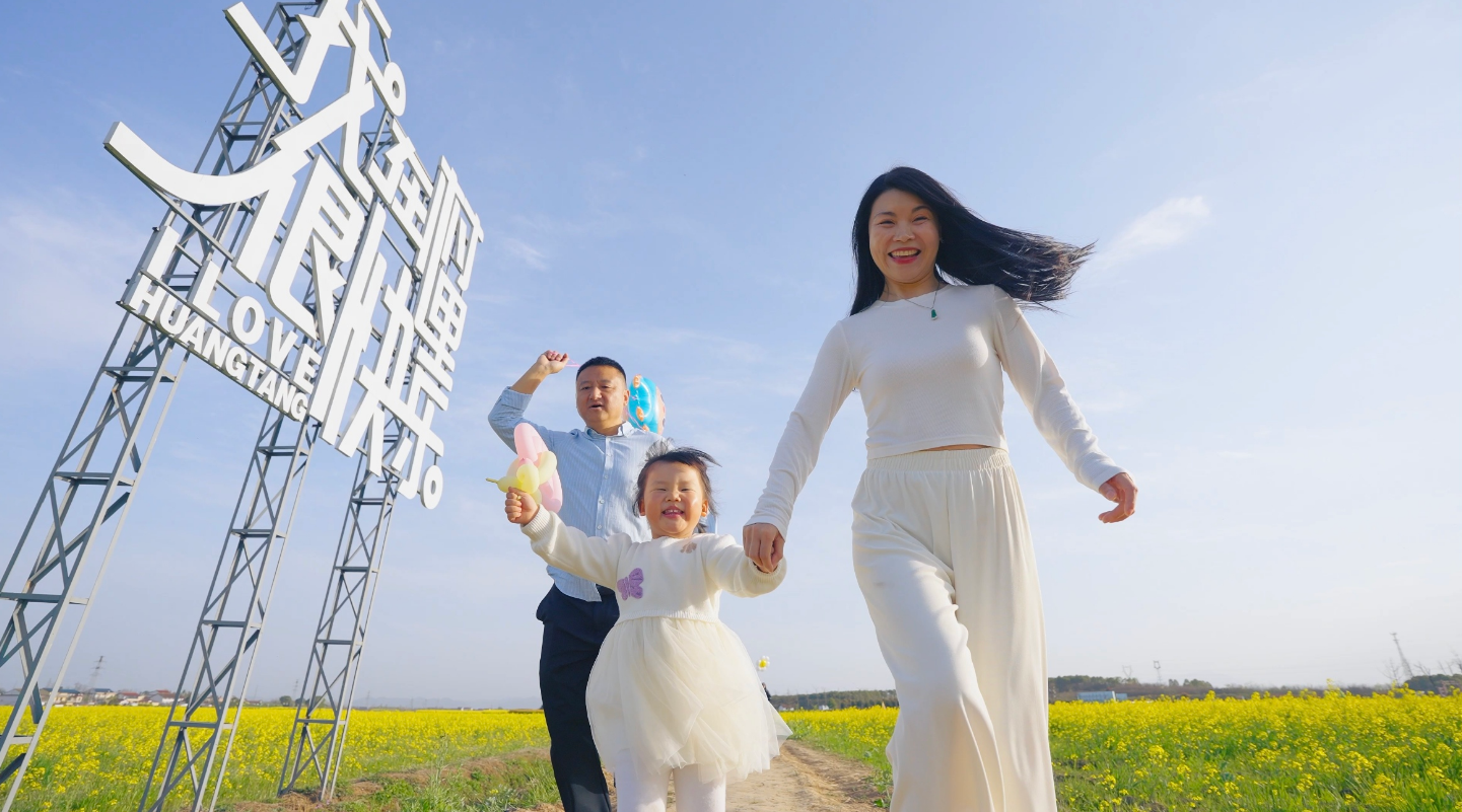 画面中,广龙与家人漫步金黄花海间,一家三口步履轻盈,笑容温暖,与连片的油菜花田相映成趣;镜头切换,广龙身着正装立于花海之中,身后“鹁鸠声里又春声”的文字与漫山金黄相融,尽显春日诗意;航拍视角下,万亩花海铺展成金色画卷,“花漾秦巴·香约汉中”的主题标语醒目亮眼,传递着汉中的春日邀约。