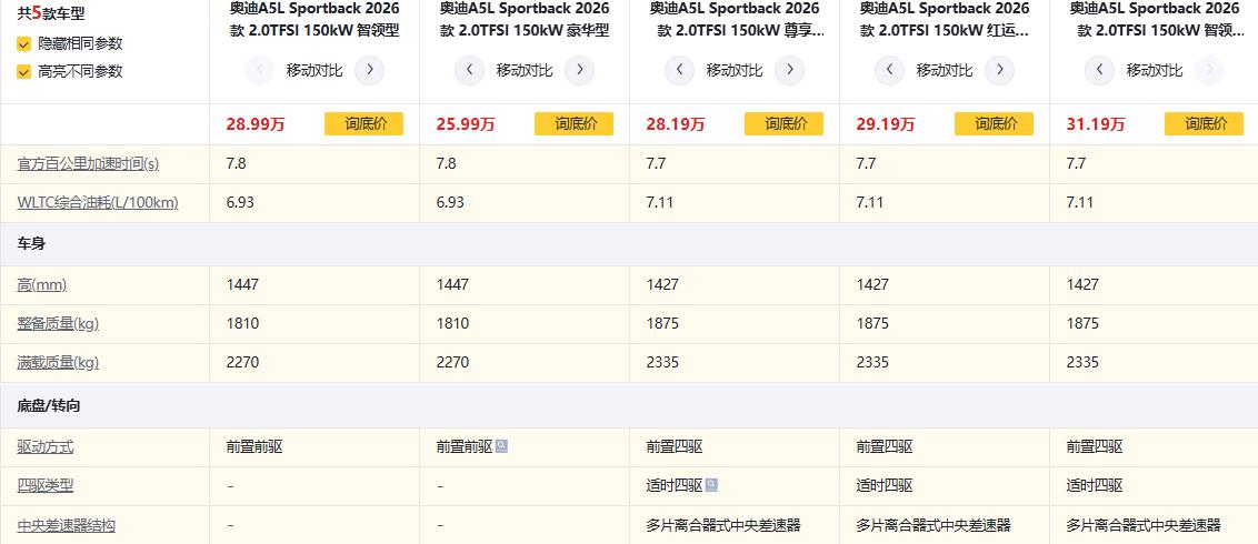 先把官方价摆明白:豪华型 27.99 万、尊享 quattro 型 30.99 万、智领型 31.99 万、红运限定版 33.49 万、智领 quattro 型 33.99 万。差价背后藏着实打实的配置差异,继续往下看!