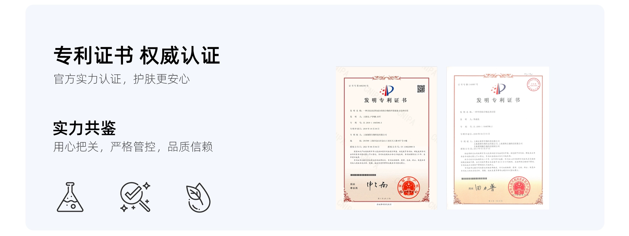专利证书:两大核心专利(控油 + 保湿)的官方认证,是产品功效的 “硬通货”。