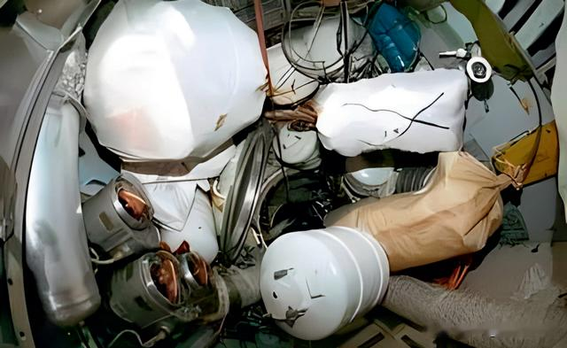 之后,航天员们在科尔尊的指挥下先是清理了和平号空间站设备和壁面上冷凝的油烟,之后又开始清理自己。“天火”浩劫后的和平号空间站于是留下了这样看起来有些滑稽的一幕:6名航天员除了脸上的口罩,浑身赤裸,漂浮着给自己做干洗……