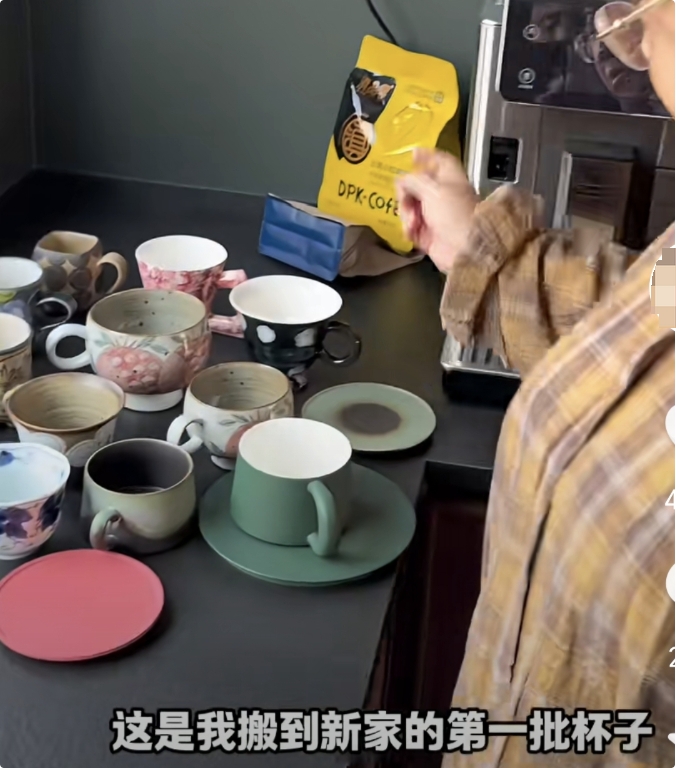 这几天胡老师可没闲着,精挑细选一堆杯子搬新家,全都摆在展示柜上。要用?还得搬梯子爬高!