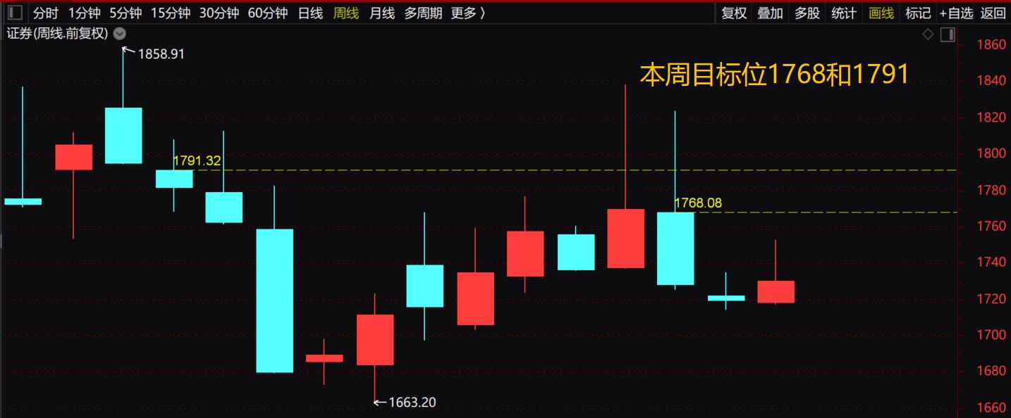 具体到板块表现,今天下午券商板块虽有小幅回落,但整体幅度不大,这或许意味着其调整基本告一段落,后续很难再创新低。券商板块本周有望收出一根反包阳线,目标价位或在1768点,如果乐观估计,甚至可能冲击1791点,对应涨幅约在2%至4%之间。
