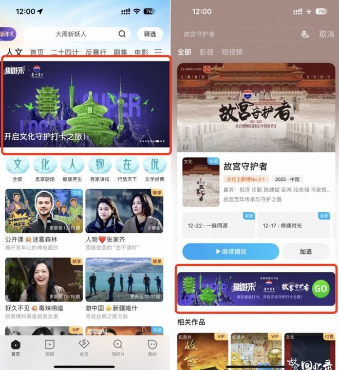 这场整合营销以线上“云守护”为起点——在《故宫守护者》上线期间,优酷联动贵州茅台酒(精品)在优酷APP里共创《故宫守护者》×贵州茅台酒(精品)「超级打卡」阵地,沉浸式陪伴用户追更。