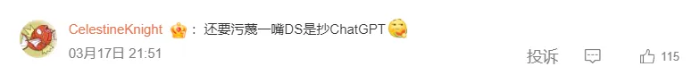 网友对污蔑DeepSeek抄袭ChatGPT的言论表示不屑