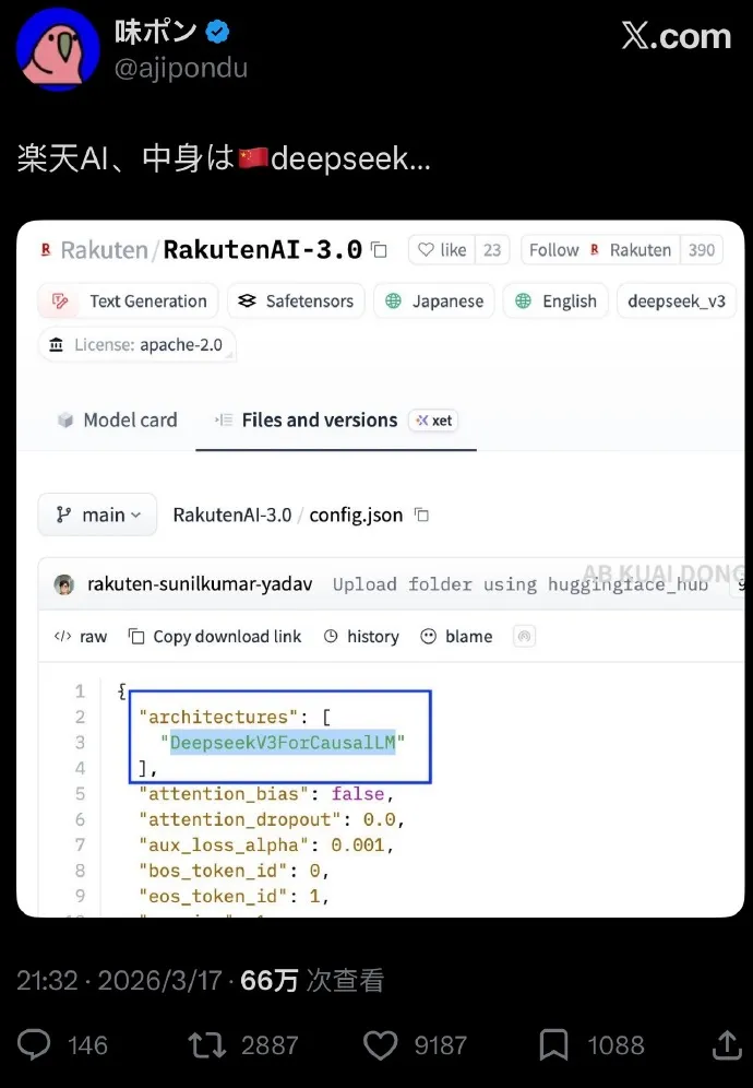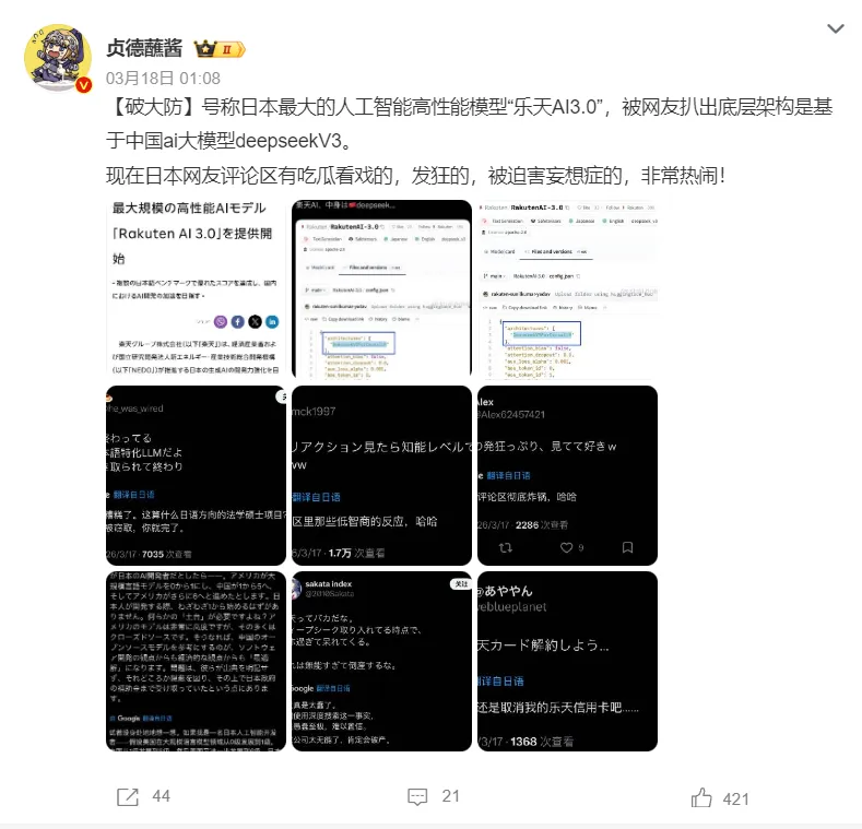 X网友爆料,乐天AI里面装的其实是中国的DeepSeek