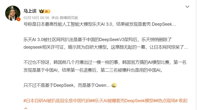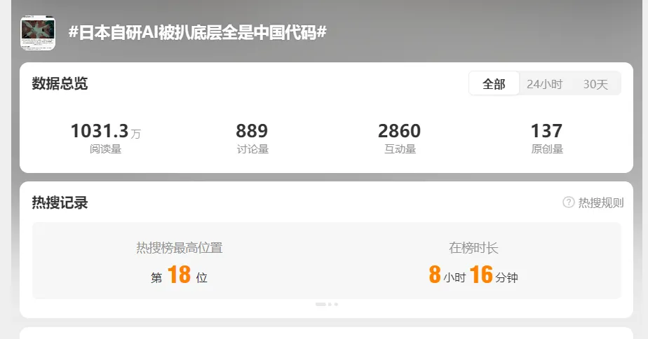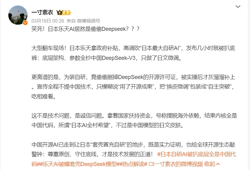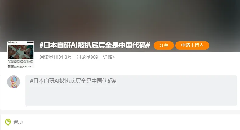 #日本自研AI被扒底层全是中国代码# 话题引发热议