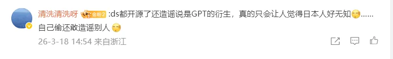 网友反驳那些造谣DeepSeek是GPT衍生的言论,直言“自己偷还敢造谣别人”