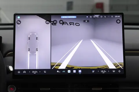 坐进车内,欧拉5的内饰遵循了东方“留白”的艺术哲学,营造出一种通透、舒展的氛围。中控台和车门内饰区域大量采用了织物网格材质包裹,触感亲和且富有环保气息。驾驶员前方是纯色双辐式方向盘和液晶仪表,旁边则是一块15.6英寸的悬浮式大尺寸中控屏,搭载了长城汽车全新的Coffee OS 3智能系统。值得一提的是,空调出风口下方保留了一排实体物理拨杆,其设计灵感源于管弦乐器,回弹手感清脆,便于驾驶时盲操,在追求全触控的潮流中保留了一份对实用性与安全性的思考。中央通道区域采用了镂空设计,增加了储物空间,同时配备了手机无线充电面板。副驾座椅被打造为“女王副驾”,不仅配备了电动腿托,还能调节至128度的黄金躺姿,并支持通风和加热功能,有效提升了出行舒适度。面积达1.65平方米的全景天幕能有效隔绝99%的紫外线,为车内带来开阔视野和良好采光。