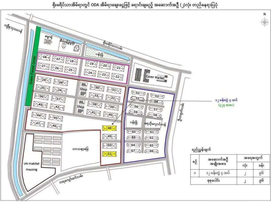 缅甸城市与住房发展司,计划于2026年1月,把仰光德贡港口镇区Yoma Yeik Thar住宅区的2栋12户4层楼,共96套住房,通过低利率住房贷款系统进行出售。