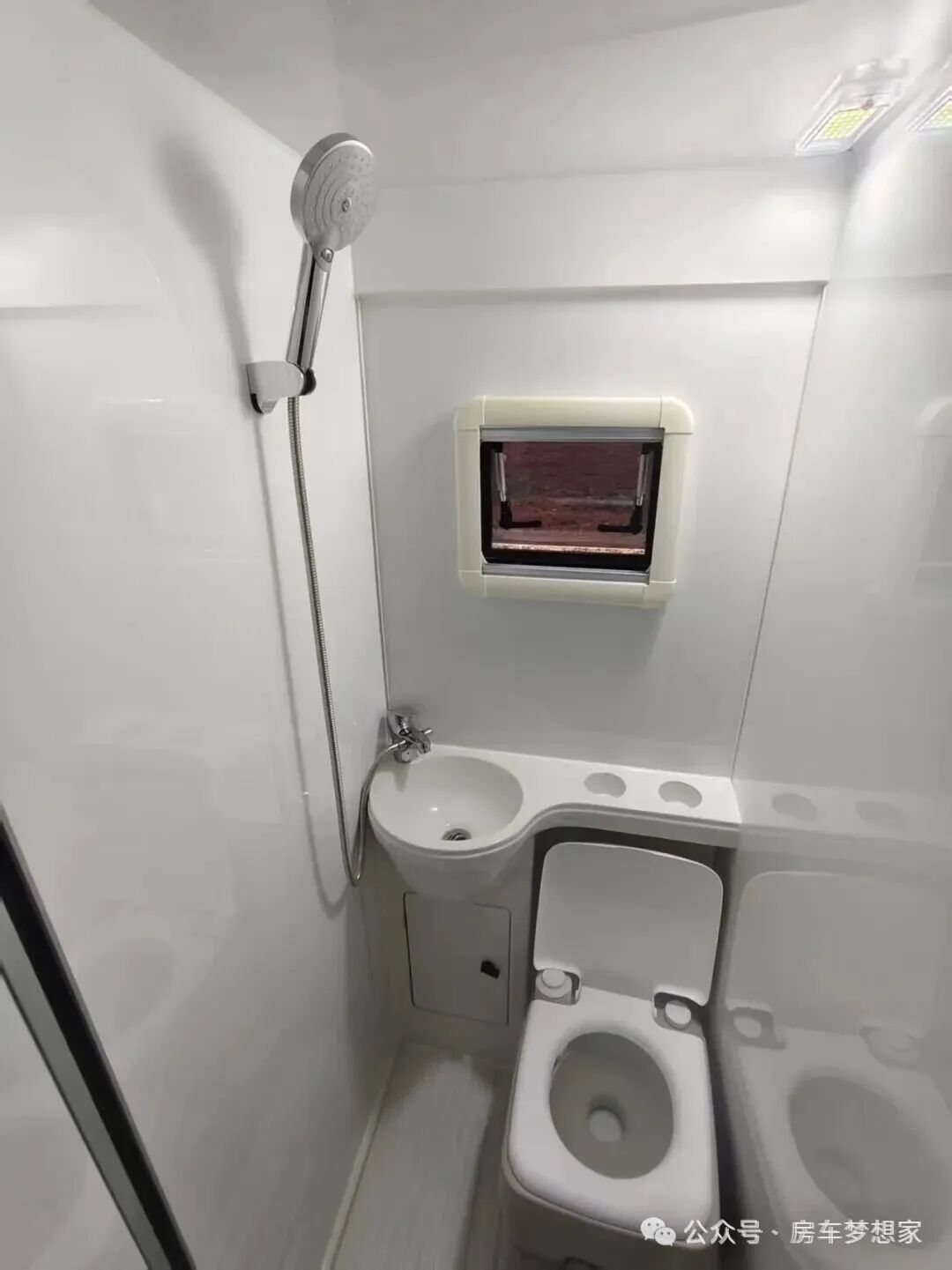 卫浴区:独立卫生间虽紧凑,但洗手盆、花洒、便携式马桶、地漏一应俱全,旅途如厕洗漱不再焦虑